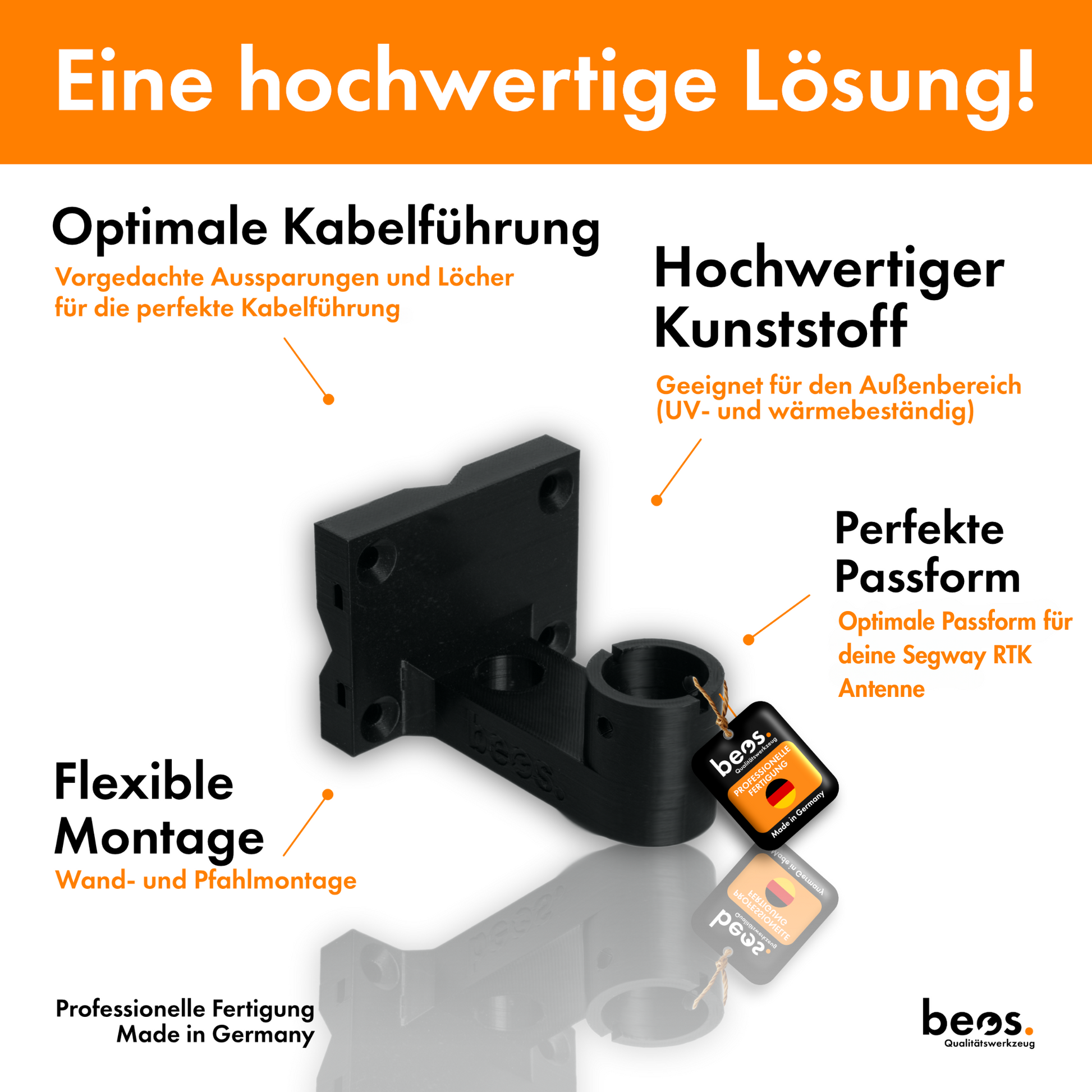 Our brackets are manufactured in Germany. They are characterized by high-quality processed plastic, which is resistant to UV radiation and heat.