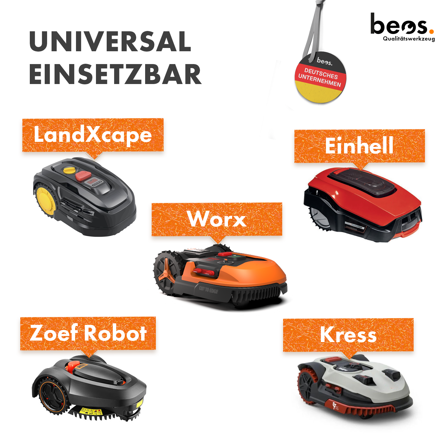 Die passgenauen Ersatzklingen von beos® können für die gängigsten Modelle der Premium Hersteller Worx, LandXcape, Zoef Robot, Einhell & Kress verwendet werden.