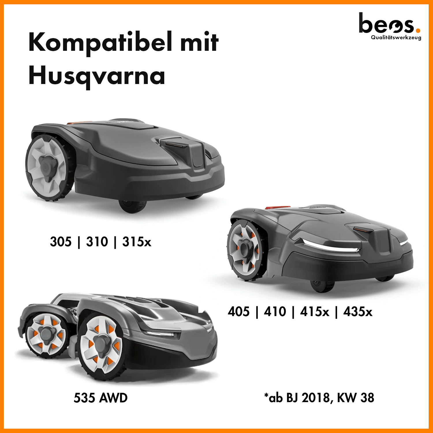 - Kompatibel mit Husqvarna 305 | 310 | 315x | 405 | 410 | 415x | 435x | 535 AWD (alle Modelle ab BJ 2018, KW 38)