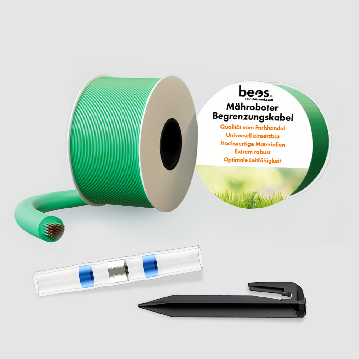beos® Erdnägel, Begrenzungsdraht und wasserdichte Lötverbinder